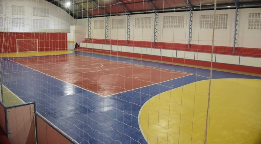 A reforma realizada no ginásio contemplou a revitalização da estrutura, reparo do telhado, troca do piso, das instalações elétricas e hidráulicas, pintura interna e externa, além da implantação de novos equipamentos esportivos.