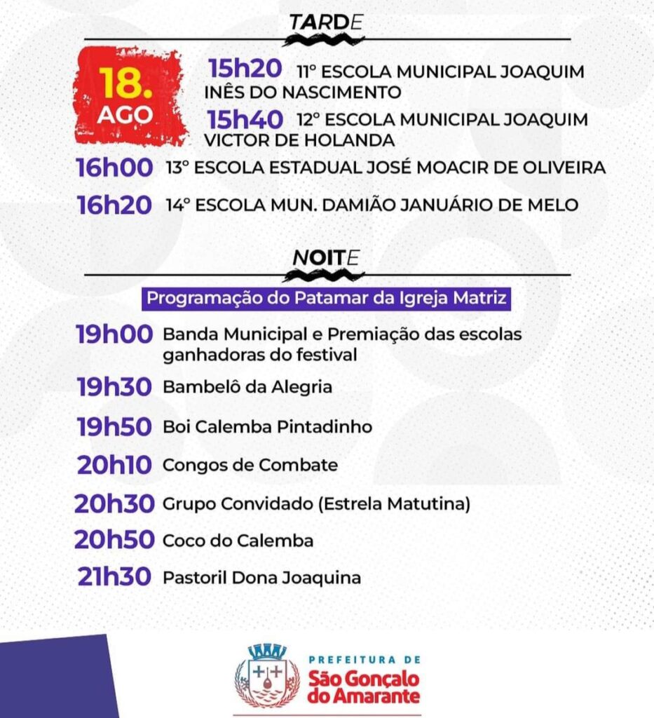 Buscando fazer memória aos mestres da cultura popular e tendo como temática o resgate das nossas manifestações culturais por meio da participação de 14 escolas, a Prefeitura de São Gonçalo do Amarante, por meio da Fundação Cultural Dona Militana, vai realizar mais uma edição do festival.
