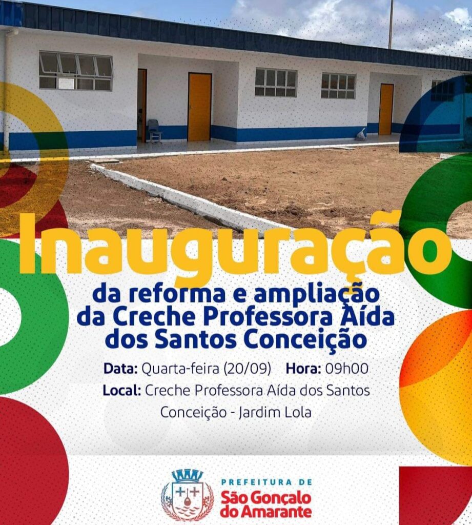 A Prefeitura de São Gonçalo inaugura nesta quarta-feira (20), às 9h, mais um importante investimento na educação do município: a reforma e ampliação da Creche Professora Aída dos Santos Conceição, no Jardim Lola.
