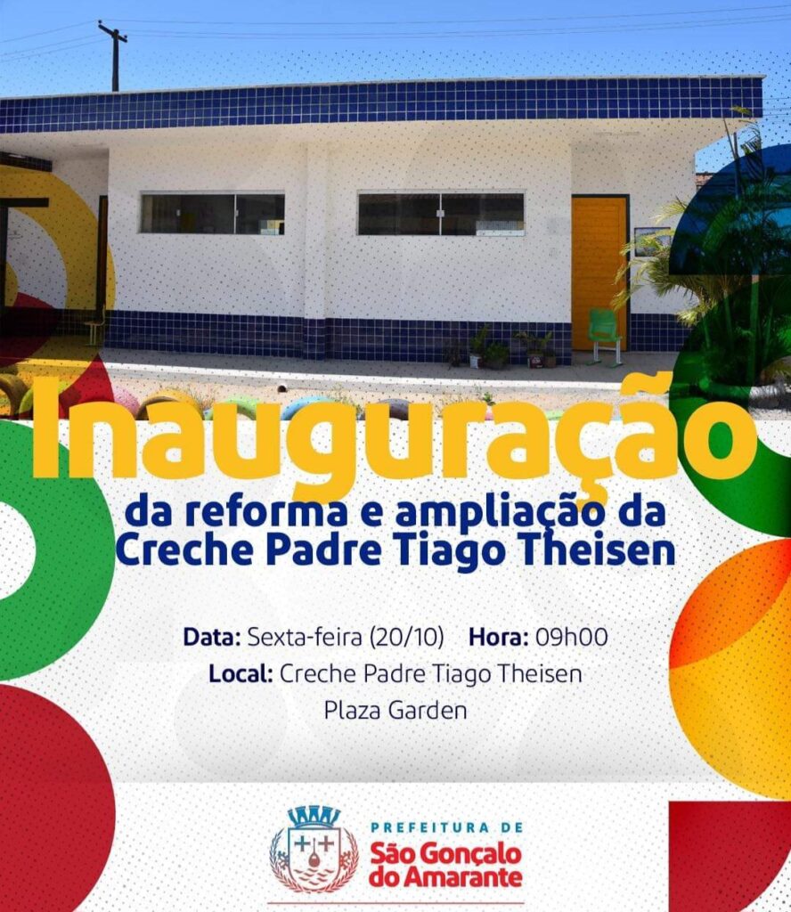Nesta sexta-feira (20) a Prefeitura de São Gonçalo entrega mais uma obra à população: é a reforma e ampliação da Creche Padre Tiago Theisen, no Plaza Garden.
