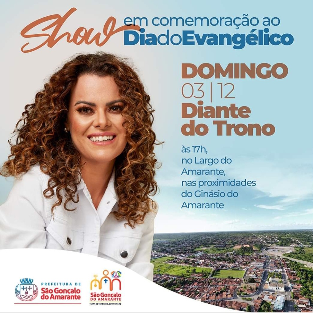No próximo dia 03 de dezembro, vamos celebrar ao som do grupo @diantedotrono Será um evento lindo de demonstração e celebração de amor e fé, realizado pela Prefeitura Municipal de São Gonçalo do Amarante.