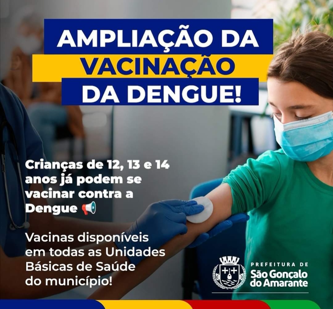 Atenção, moradores de São Gonçalo! Agora, além das crianças de 10 e 11 anos, as crianças de 12 a 14 anos também podem se vacinar contra a Dengue!