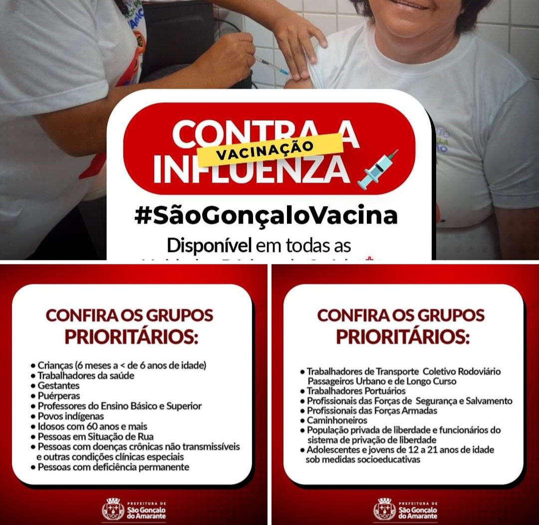 Não perca tempo, venha se vacinar e faça parte dessa corrente pela saúde! #Vacinação #SaúdePública #Prevenção #SãoGonçalo #Influenza #BemEstar #RN