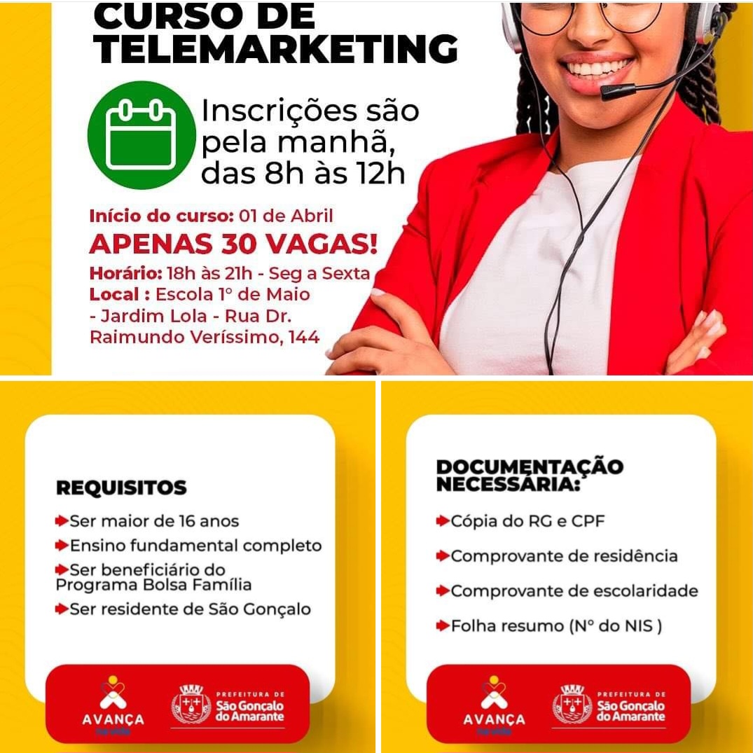 #CursoDeTelemarketing #OportunidadeDeCarreira #InscriçõesAbertas #SãoGonçalo #RN