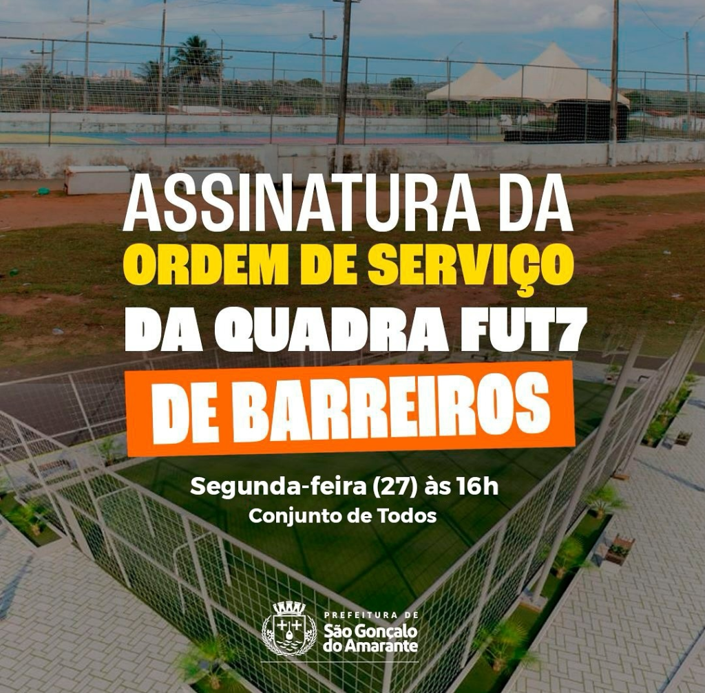 A ordem de serviço para a construção da Quadra Fut7 de Barreiros acontecerá as 16h ao lado da quadrade esportesno conjunto de todos.