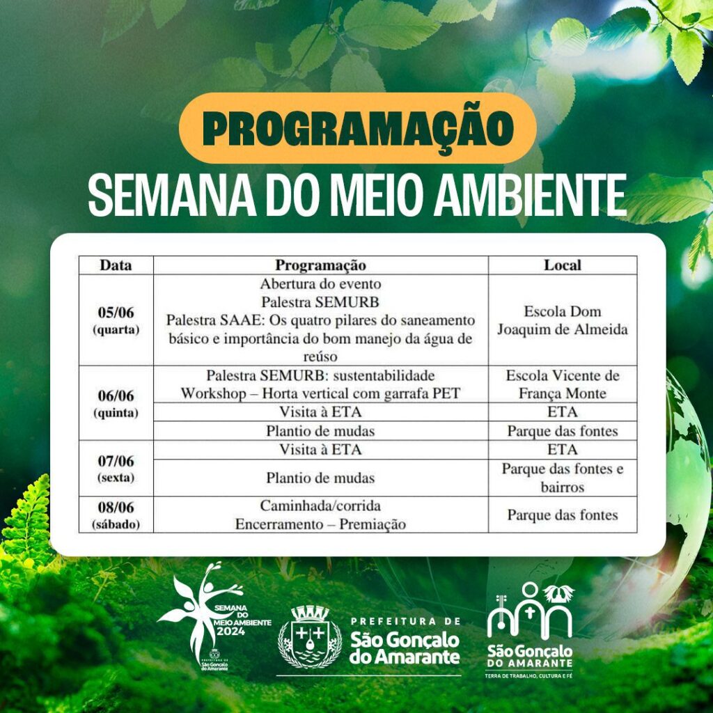 A Prefeitura de São Gonçalo do Amarante convida todos para a programação da Semana do Meio Ambiente!