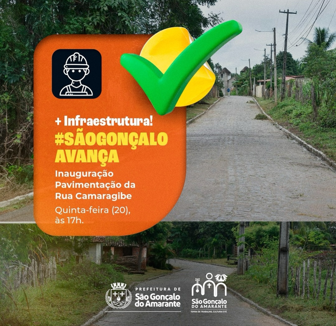 A Prefeitura de São Gonçalo tem o prazer de convidar a todos para a inauguração da Rua Camaragibe, que foi revitalizada e pavimentada. A cerimônia será realizada amanhã, dia 20, às 17h.