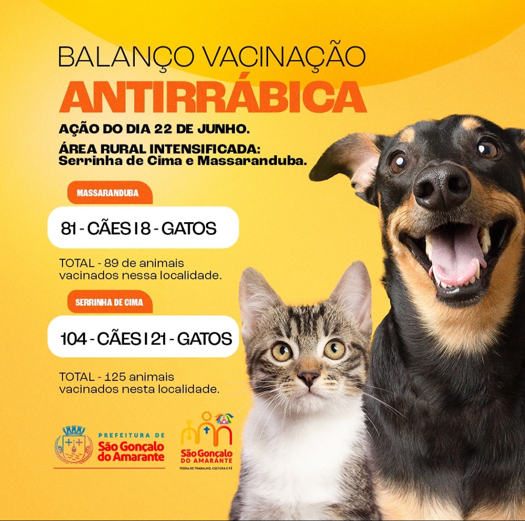 No último sábado, 22 de junho, a prefeitura de São Gonçalo do Amarante realizou a campanha de vacinação antirrábica, que foi um sucesso, garantindo a imunização de muitos animais nas comunidades de Serrinha de Cima e Massaranduba.