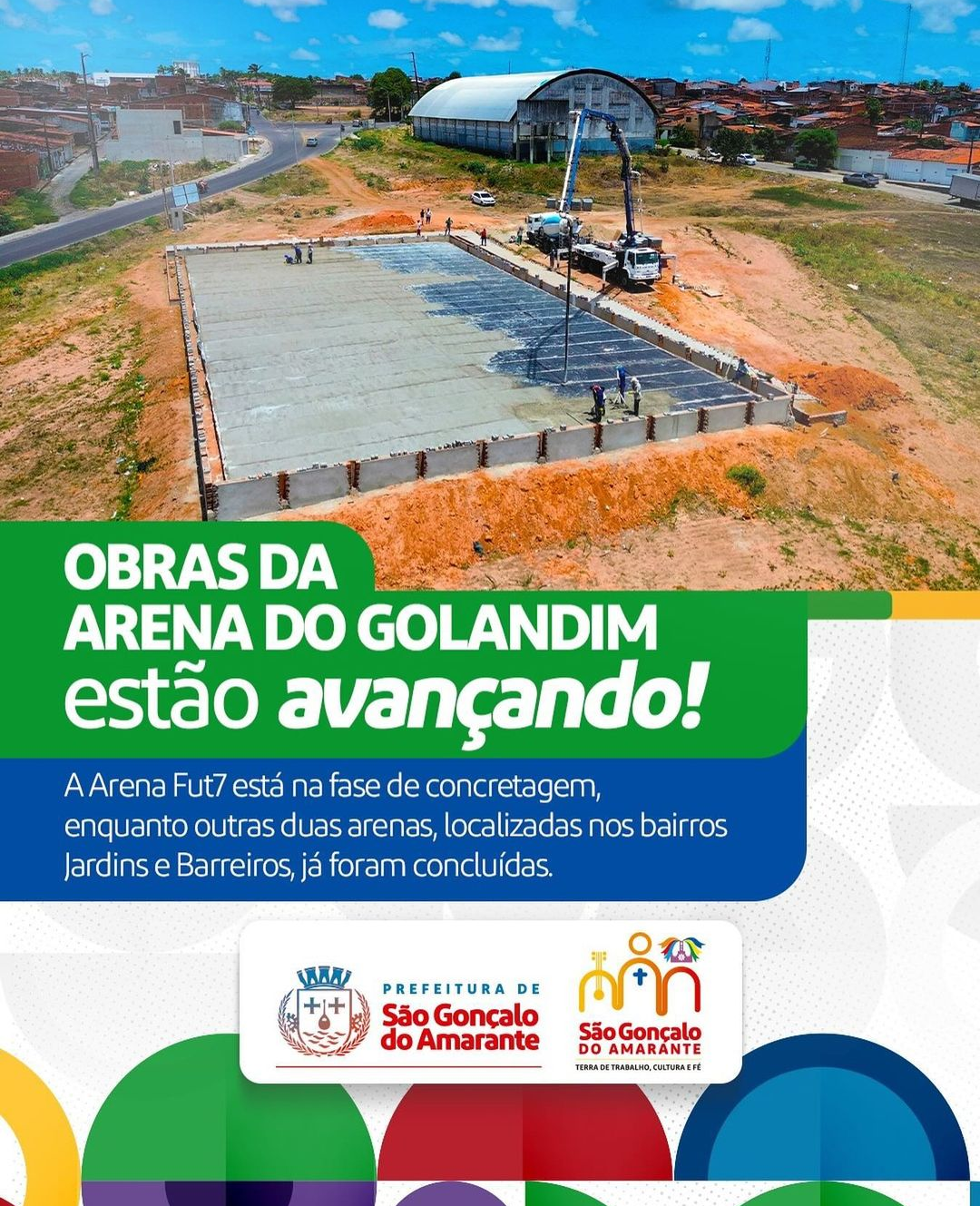 No bairro do Golandim, as obras já estão na fase concretagem, enquanto as arenas dos bairros Jardins e Barreiros já foram finalizadas. Em breve, mais duas regiões também serão contempladas!