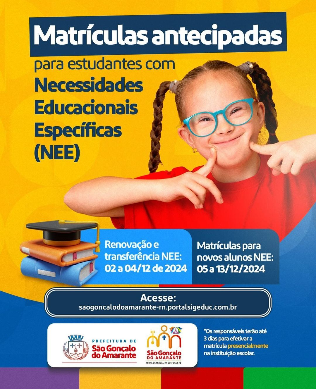 Renovação e transferência NEE: 02 a 04/12 de 2024 Matrículas para novos alunos NEE: 05 a 13/12/2024