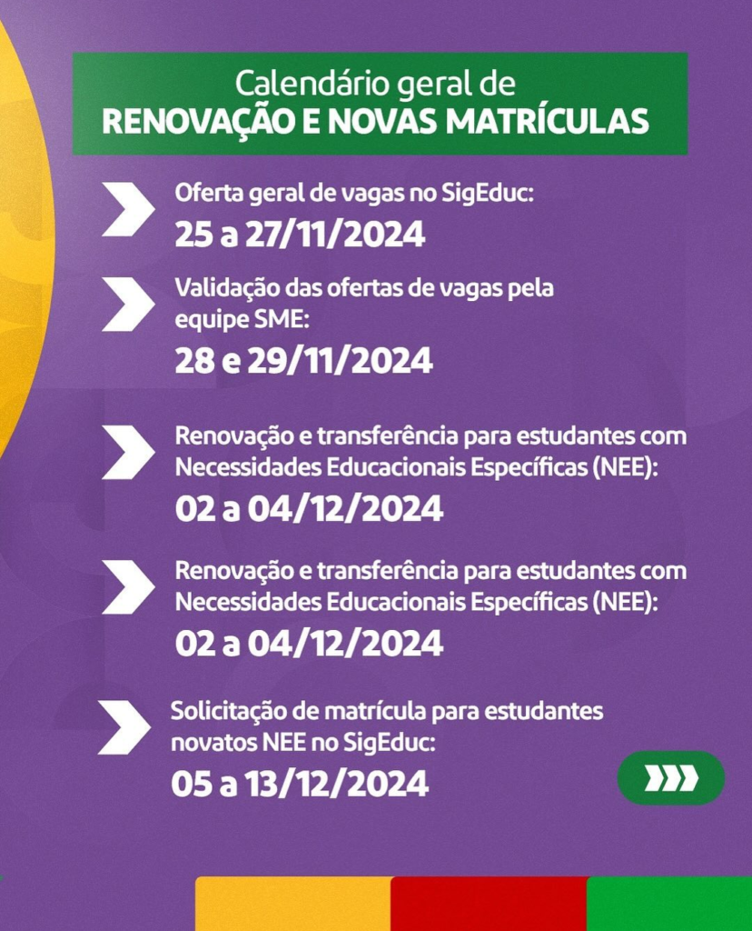 Confira o calendário geral para a renovação e novas matrículas escolares!