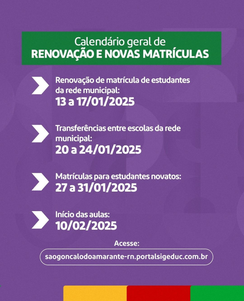 Prefeitura Municipal de São Gonçalo do Amarante divulga o calendário de renovação e novas matrículas