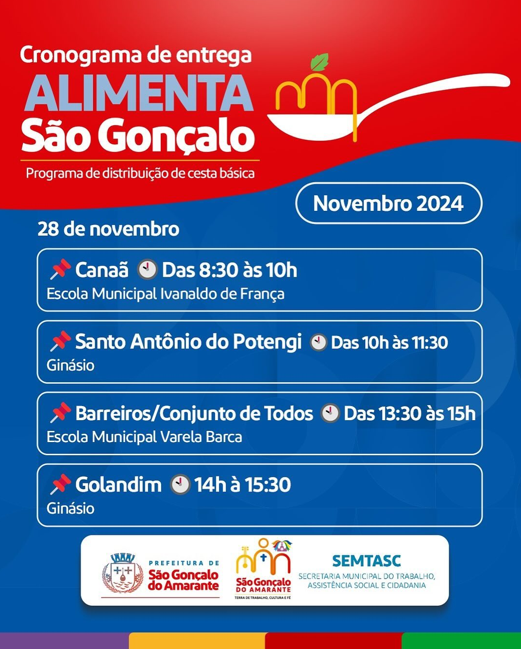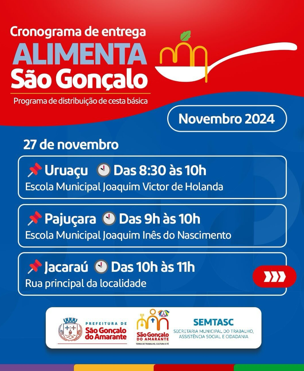 Prefeitura Municipal de São Gonçalo do Amarante divulga cronograma do Alimenta São Gonçalo.