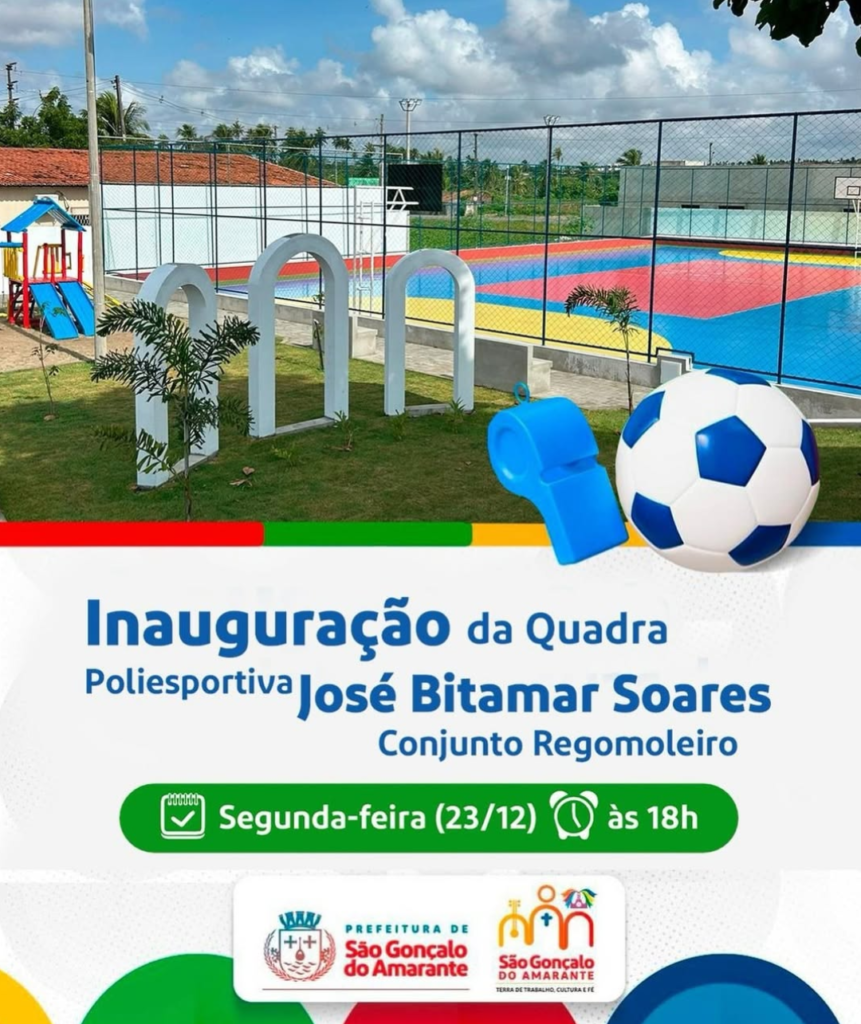 Nesta segunda-feira (23), a Prefeitura de São Gonçalo do Amarante vai inaugurar mais uma obra importante para São Gonçalo do Amarante: a Quadra Poliesportiva de Regomoleiro.