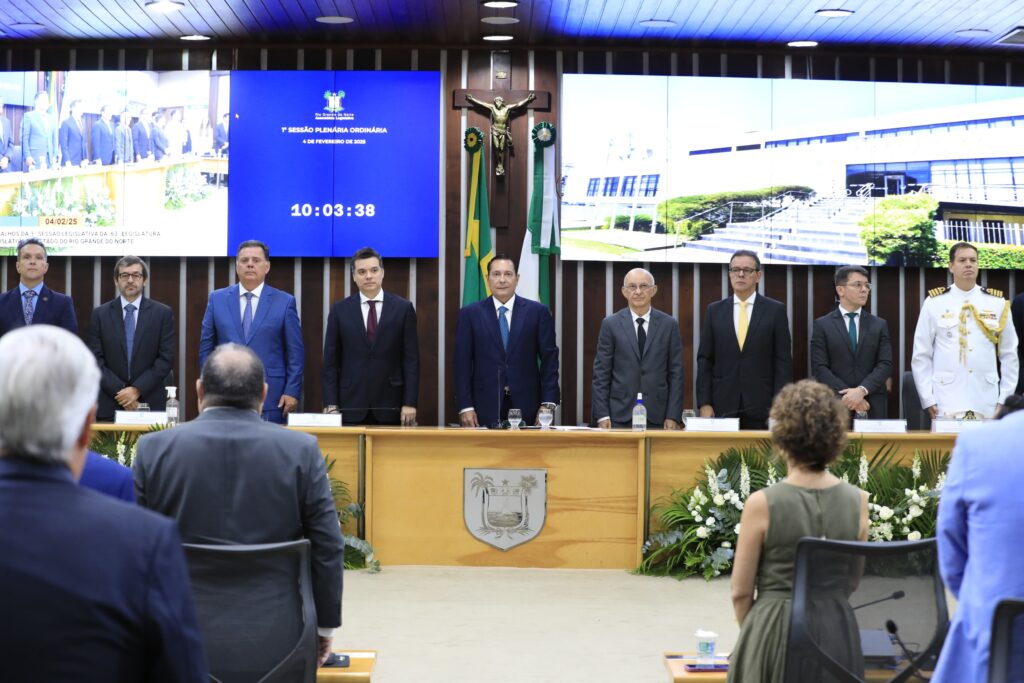 Na mesma sessão, o deputado Ezequiel Ferreira assinou o termo de posse como presidente da Assembleia Legislativa para o biênio 2025/2026. Esta é a sexta vez que Ezequiel assume a presidência do Poder Legislativo, eleito pelo colegiado de 24 deputados. A mesa diretora também foi composta pelos seguintes membros: primeiro vice-presidente, deputado Kleber Rodrigues; segunda vice-presidente, deputada Eudiane Macedo; primeiro secretário, Tomba Farias; segundo secretário, Galeno Torquato; terceiro secretário, Francisco Medeiros; e quarta secretária, Terezinha Maia.