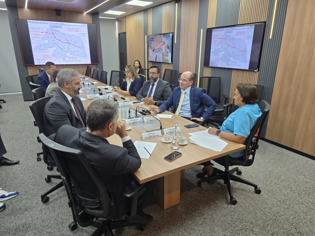 A reunião também contou com a presença do secretário estadual de Infraestrutura, Gustavo Coelho Rosado, e do superintendente do DNIT, Fabrício Galvão.