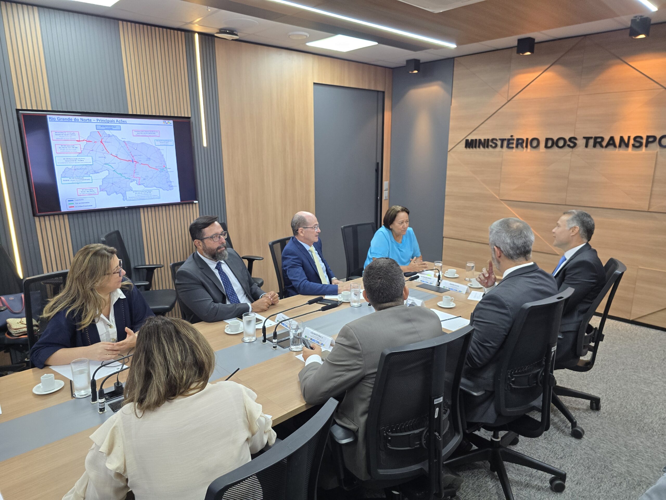 A governadora Fátima Bezerra participou, nesta quarta-feira (5), de uma audiência no Ministério dos Transportes, em Brasília, para acompanhar o andamento da duplicação da BR-304.