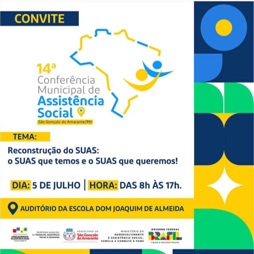 A Prefeitura de São Gonçalo do Amarante, por meio da Secretaria Municipal de Trabalho, Assistência Social e Cidadania (Semtasc), realiza nesta quarta-feira (5), a partir das 8h, no Auditório da Escola Muncipal Dom Joaquim de Almeida, a 14ª Conferência Municipal de Assistência Social− uma importante oportunidade para que os cidadãos participem ativamente do processo de reconstrução do Sistema Único de Assistência Social (SUAS), unindo esforços para fortalecer e aprimorar o sistema de assistência social do município.